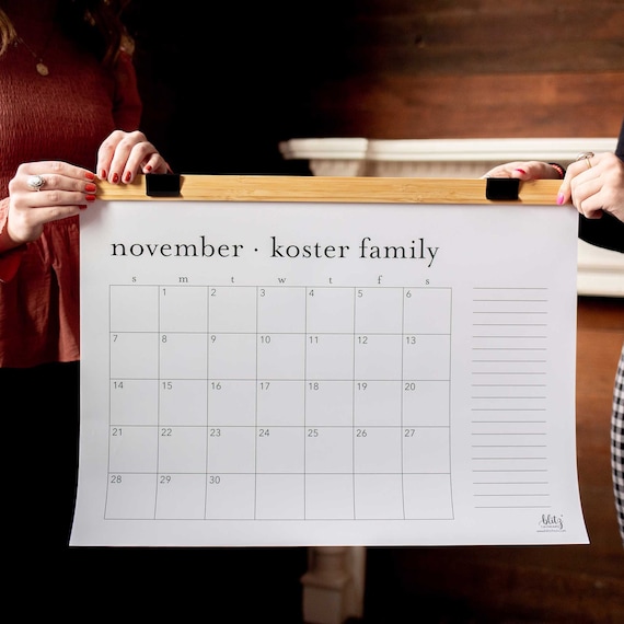 Large Personalized Monthly Wall Calendar With Wood Hanger 12