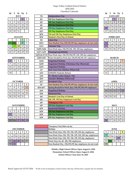 Calendars and Events Napa Valley Unified School District